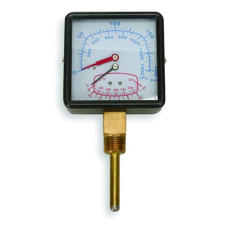 Boiler Gauge, Square, 0-200PSI, 80 to 320 F