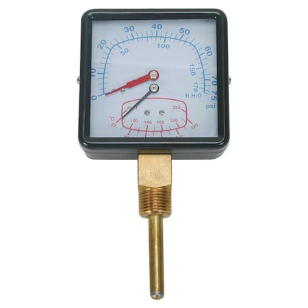 Boiler Gauge, Square, 0-75 PSI, 60 to 260 F