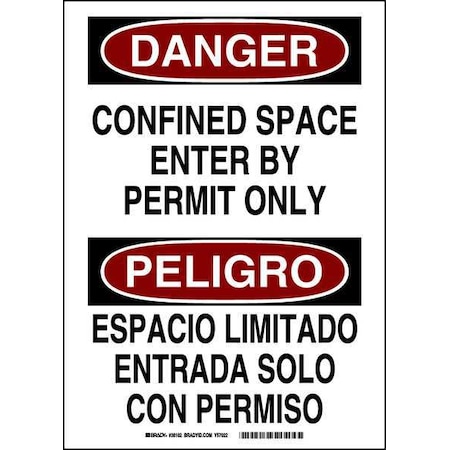 Danger Sign-Confined Space Enter By Permit Only-10in x 14in OSHA, 14" H, DS-Confined Space Permit 2