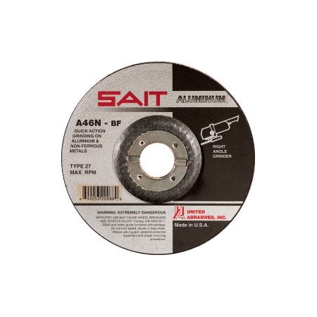 United Abrasives - Sait Depressed Center Wheel T27 A46N 5"x 1/4" x 7/8" 46 Grit Aluminum Oxide