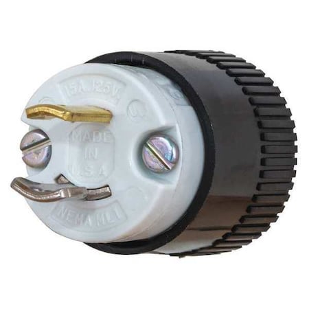 Midget Locking Plug, ML1-15P, 15 A, 125V AC, Single Phase, 2 Pole, Screw Terminals, Black, White