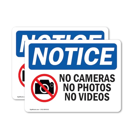 OSHA Notice, 5" Height, No Cameras No Photos No Videos Sign With Symbol, 7" X 5", Landscape