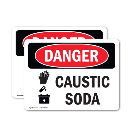 OSHA Danger Sign, 18" Height, 24" Width, Rigid Plastic, Caustic Soda, Landscape, 1824-L-1058