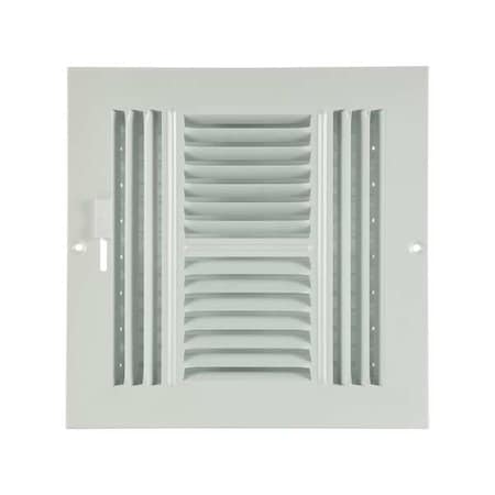 Sidewall/Ceiling Register, 10 in W x 8 in H Opening, White, Steel, Three-Way, Surface Mount