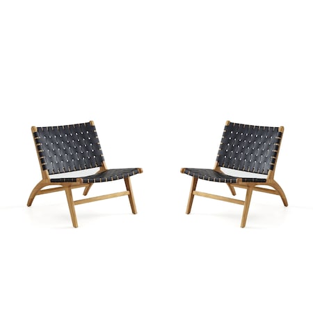 Maintenon Leatherette Accent Chair in Black with Nature Feet , Set of 2