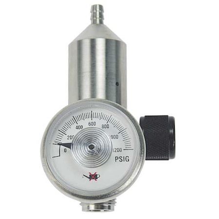 High Purity Gas Regulator, Carbon Dioxide, Single Stage, 0.825"-14 Inlet, 1/4 in Outlet, 50 psi