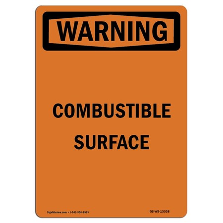 OSHA WARNING Sign, Combustible Materials W/ Symbol, 14in X 10in Aluminum, 10" W, 14" L, Portrait