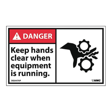OSHA Danger, Keep Hands Clear Of Moving Machinery, 5in X 3.5in Decal, 5" W, 3.5" H, Landscape