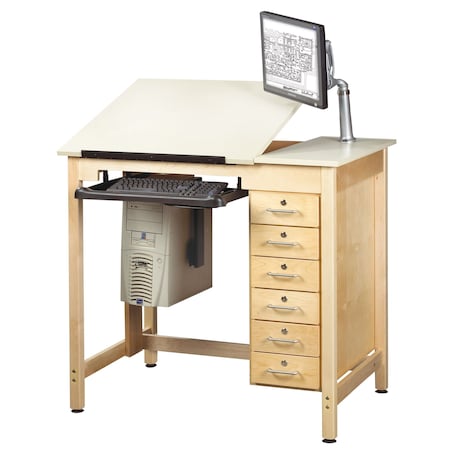 Drawing Table DRAWING TABLE WITH DRWRS, 30" D X 39-3/4" H, 42" W X Plastic Laminate, Almond