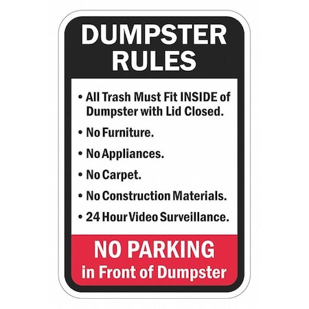 Do Not Park in Front of Dumpster Heavy-Gauge Alum Rust Proof Parking Sign, 18" x 24", A-1824-24144