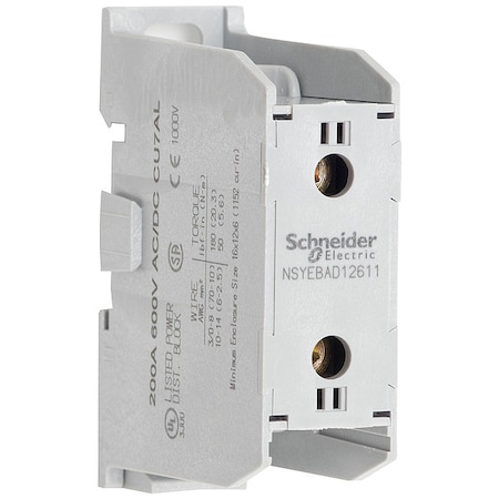 Power Distribution Block, Finger-Safe, 1 Pole, 200 A Copper, 600 V AC/DC, DIN Rail