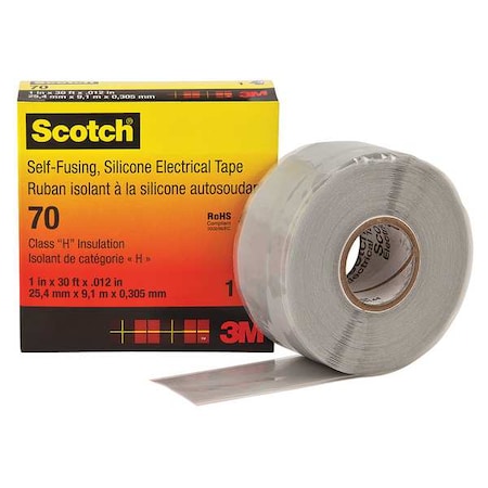 Silicone Electrical Tape, 70, Scotch, 1 in W x 30 ft L, 12 mil thick, Gray, 1 Pack