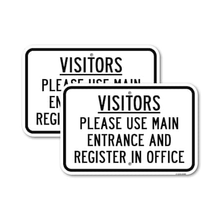 Visitors Please Use Main Entrance & Register In Of, 12'' X 18'' 2 Signs, Heavy Gauge Aluminum, 2PK