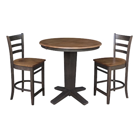 36 in. Solid Wood Round Extension Dining Table with 2 Counter Height Stools in Hickory/Washed Coal