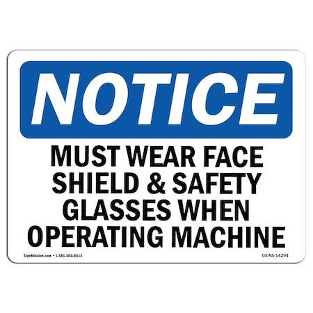 OSHA Notice Sign, Must Wear Face Shield & Safety, 18in X 12in Aluminum, 12" W, 18" H, Portrait