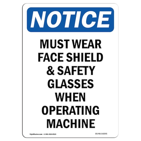 OSHA Notice Sign, Must Wear Face Shield & Safety, 10in X 7in Decal, 7" W, 10" H, Portrait