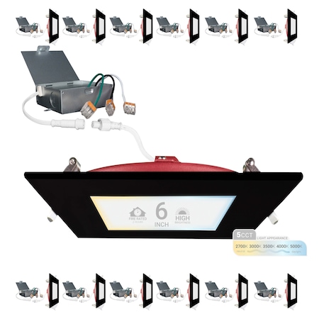 6 Inch 2 Hour Black Square Fire Rated Recessed Lighting, Wafer LED Lights 2700K-5000K, 1200LM, 6PK