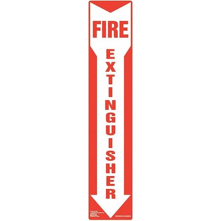 Safety Sign, Fire Extinguisher Legend, Vinyl, Adhesive Sign Mounting, 18 in x 4 in, Red/White