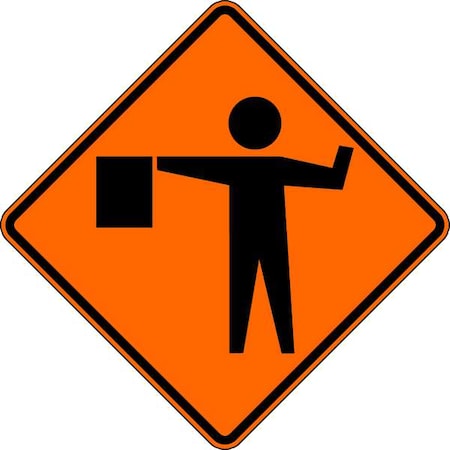 Flagger Ahead Traffic Sign, 36 in H, 36 in W, Vinyl, Diamond, C/36-SBFP-3FH-HD-FLAGGER SYMBOL