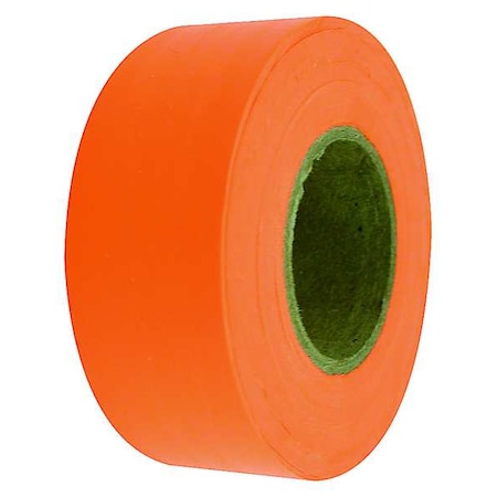 Flagging Tape, No Legend, Fluorescent Orange, 1/2 in Wide x 300 ft Length, Vinyl, 2.5 mil
