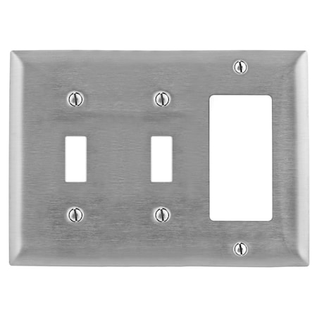 Wallplates and Boxes, Metallic Plates, 3- Gang, 2) Toggle 1) GFCI Openings, Standard Size, Stainless Steel