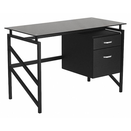 Computer Desk Glass Top Desk w/3 Drawer Pedestal, Blk, 23-1/2" D X 29-1/2" H, 47-1/4" W X Black
