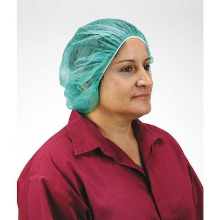 Bouffant Cap, Polypropylene, 24 in Dia., Green, L, 1000 PK