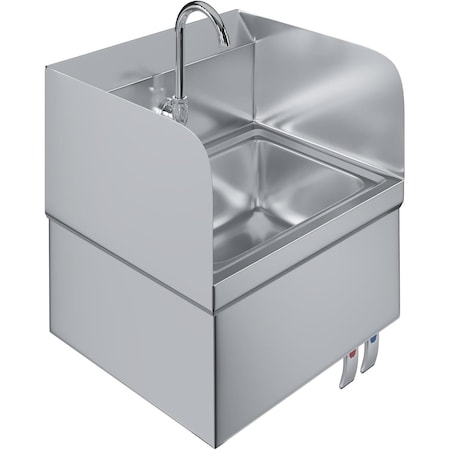 Stainless Steel Hands Free Wall Mounted Hand Sink 17 in. x 15 in. with double knee valves and faucet
