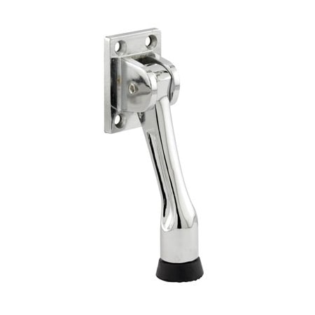 Door Holder, 4 in. Reach, Heavy Duty Diecast, Chrome Plated, Black Rubber Foot (Single Pack)