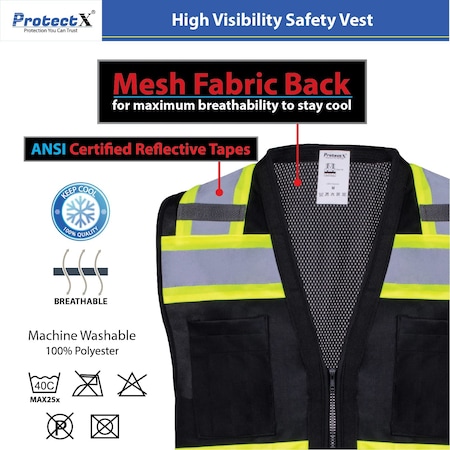 Hi-Vis Safety Vest M H Back, , Zipper 6 Pockets