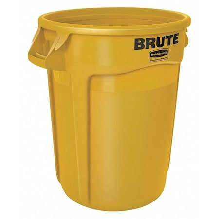 BRUTE 32 gal Round Heavy Duty Plastic Can, Yellow, None, Plastic, Not Applicable