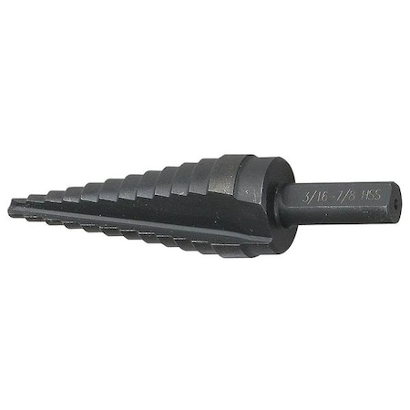 Unibit No. 4 Step Drill Bit, 12 Hole Sizes, 3/16 to 7/8 ", 1/16" Steps, High-Speed Steel, Hex Shank