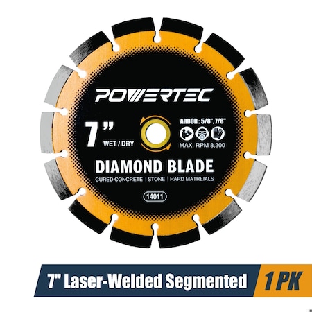 7in Laser-Welded Segmented Diamond Saw Blade for Wet Tile Saw, Diamond Blade for Cutting, 1PK