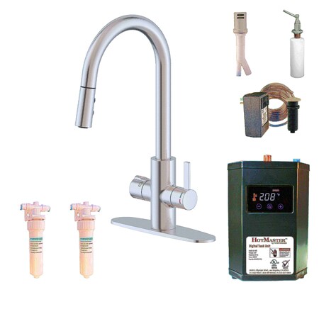 HotMaster 3 in 1 High Arch Single Handle Kitchen Faucet Appliance W/ Single Stage Carbon Filter & Di