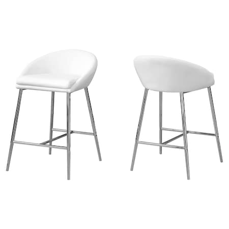 Bar Stool, Set Of 2, Counter Height, Kitchen, Metal, Pu Leather Look, White, Chrome, Contemporary