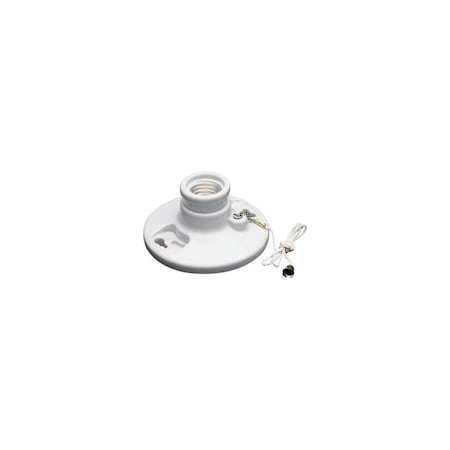 Pullchain Lamp Holder with Cage Neck, 125 V, 250 W, Porcelain Housing Material, White