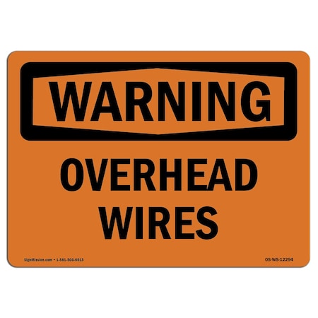 Safety Sign, OSHA WARNING, 10" Height, 14" Width, Rigid Plastic, Overhead Wires, Landscape