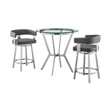 Naomi and Lorin 3-Piece Counter Height Dining Set in Brushed Stainless Steel and Gray Faux Leather