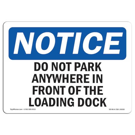 OSHA Sign, No Parking In Front Of Loading Dock, 24in X 18in Rigid Plastic, 18" W, 24" L, Landscape