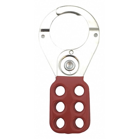 Lockout Hasp, Red, Steel, 6 Max. No. of Padlocks, 9/32 in Max. Shackle Dia., 1 in Jaw Clearance