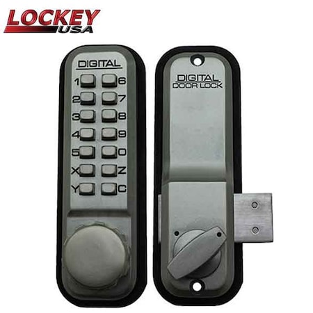 Lockey: 2200 - Narrow-Stile Mechanical Keypad Keyless Deadbolt Lock - Surface Mount - Satin Nickel