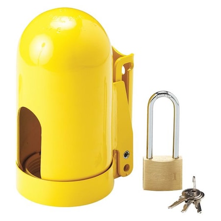 Locking Cylinder Cap, Fine Thread, Yellow, Steel, 1 Max. No. of Padlocks, 3/8 in Max. Shackle Dia.