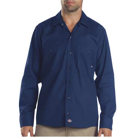 Men's Long Sleeve Industrial Work Shirt, Cotton/Polyester, Button Fronts, 2 Pocket(s), Dark Blue, L