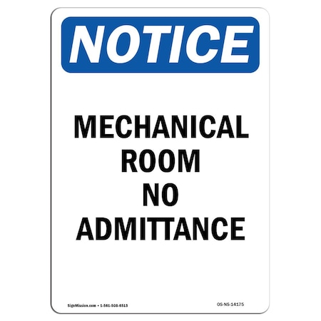Safety Sign, OSHA Notice, 7" Height, Rigid Plastic, NOTICE Electrical Room Sign, Landscape