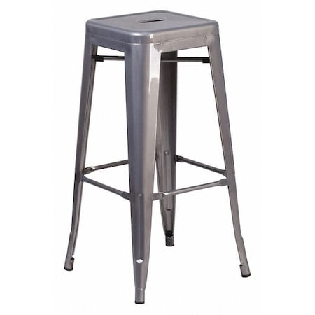 30" High Metal Indoor Stackable Bar Stool, Silver, PK4