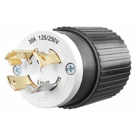 Locking Plug, L14-30P, 30 A, 125/250V AC, Single Phase, 3 Pole, Screw Terminals, Black, White
