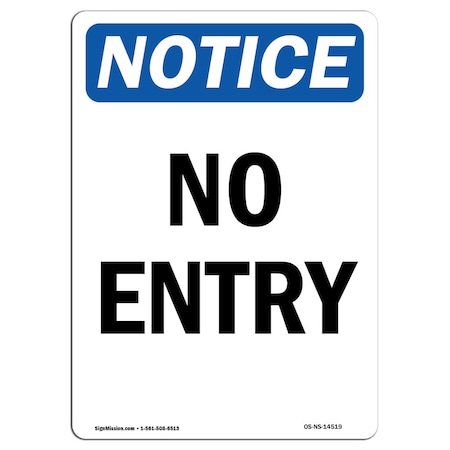 Safety Sign, OSHA Notice, 18" Height, 24" Width, NOTICE No Entry Without Permission Sign, Landscape