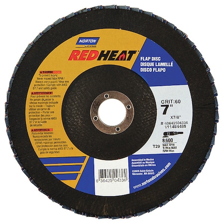 Flap Disc, 7 In x 60 Grit, 5/8-11