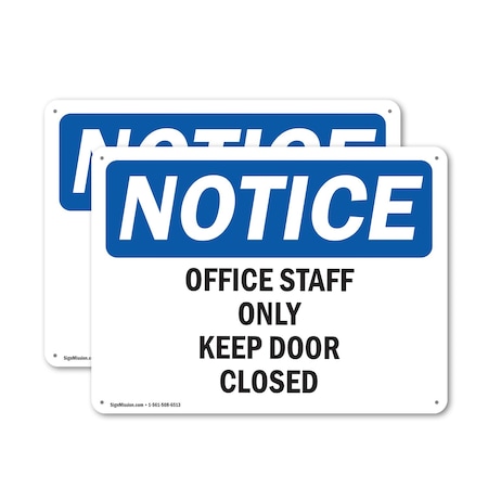 Safety Sign, OSHA Notice, 18" Height, Aluminum, Office Staff Only Keep Door Closed Sign, Landscape