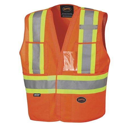 High-Visibility Vest, Type R, Class 2, U-Block, Silver Stripe, Zipper, Mesh Polyester, Orange, XL